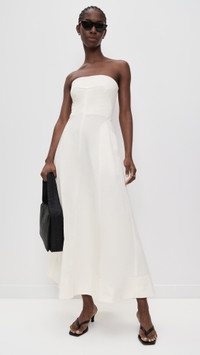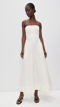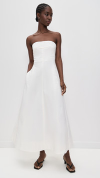 - Fabric: Heavyweight, non-stretch poplin - Boned side seams at bodice - Maxi length - Strapless - Sleeveless - Hook-and-eye and hidden zip at back - On-seam side pockets - Shell: 97% cotton/3% elastane - Lined bodice, unlined skirt - Dry clean - Imported, China Style #STAGN30162 Size & Fit Customers say: Runs small; please size up. Model measurements: Size XS: Cher (5'11") usually wears size XS Measurements from size XS Length: 43.75in / 111.0cm, from center back