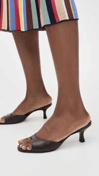 - Upper: Leather - Leather footbed - Lining: Leather - Slip on - Open toe - Leather sole with rubber heel cap - Imported, Brazil - This item cannot be gift-boxed Style #STAUD32715 Size & Fit Customers say: Runs small; please size up. Heel: 2.5in / 65mm