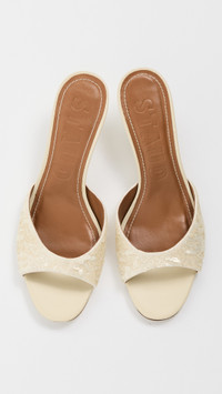 - Upper: Leather - Sequined upper - Lightly padded footbed - Lining: Leather - Kitten heel - Slip on - Open toe - Leather sole with rubber heel cap - Made in Portugal - This item cannot be gift-boxed Style #STAUD32706 Size & Fit Heel: 2.25in / 60mm