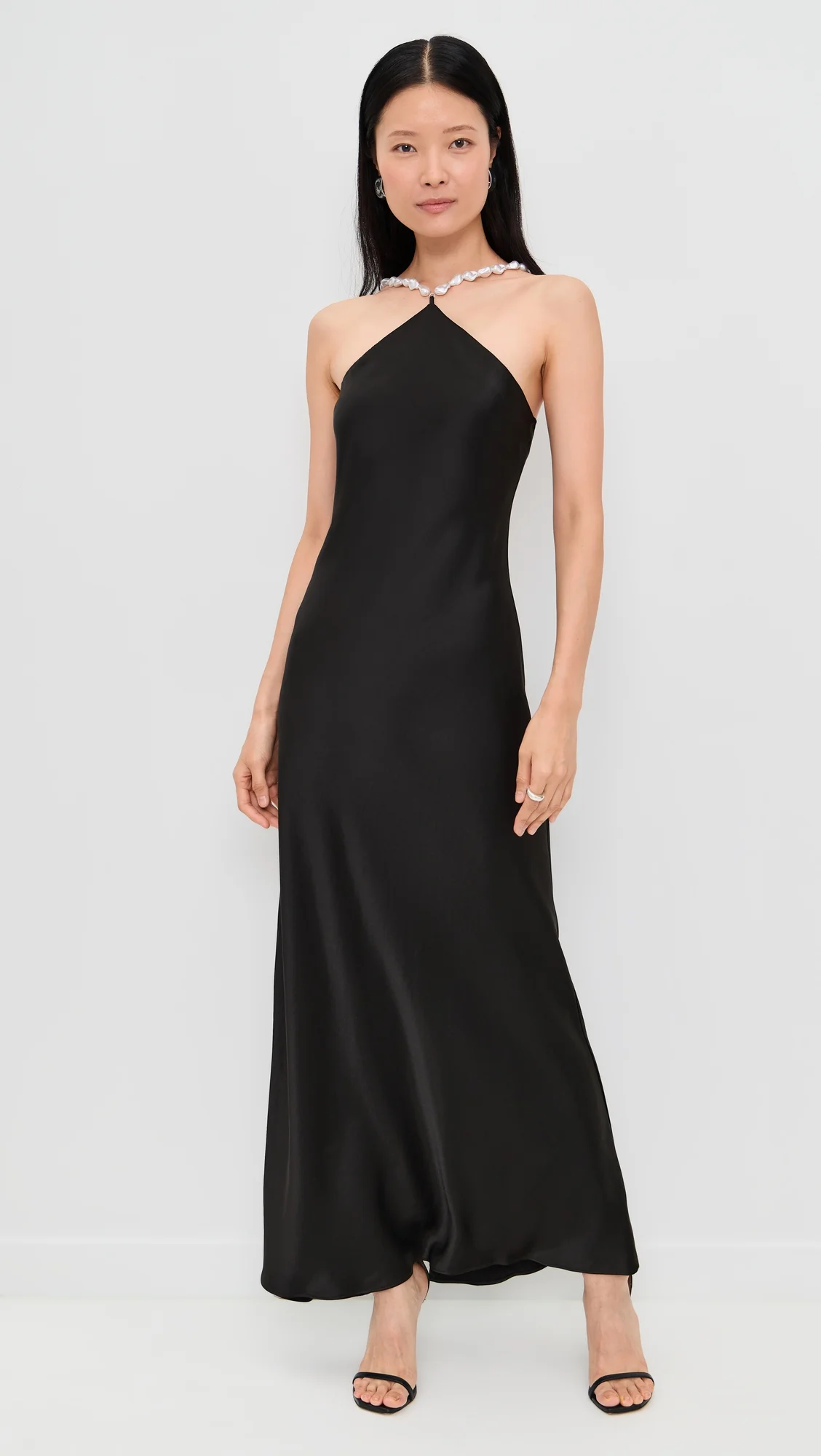 - Fabric: Lightweight, non-stretch satin - Beaded straps - Maxi length - Halter neckline - Adjustable shoulder straps - Hook-and-eye and hidden zip at back - Shell: 76% acetate/24% polyester - Unlined - Dry clean - Imported, China Style #STAUD32923