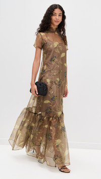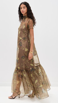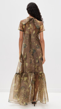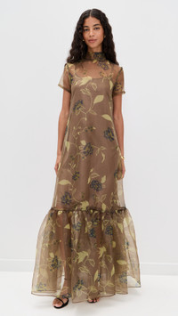 - Fabric: Lightweight, non-stretch organza - Floral print - Ruffled hem - Tie keyhole at back - Maxi length - Mock neck - Short sleeves - Hook-and-eye and hidden zip at back - Shell: 100% polyester - Optional slip with adjustable straps - Dry clean - Imported, Vietnam Style #STAUD32757 Size & Fit Customers say: Runs small; please size up. Model measurements: Size XS: Rocio (5'11") usually wears size XS Measurements from size XS Length: 59in / 150.0cm, from shoulder