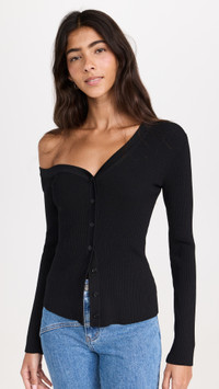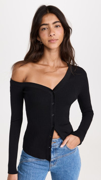 - Fabric: Lightweight, ribbed knit - Asymmetrical V neckline and long sleeves - Button placket - Shell: 59% viscose/40% nylon/1% elastane - Hand wash - Imported, China Style #STAUD31703 Size & Fit Measurements from size S Length: 19in / 48.0cm, from shoulder