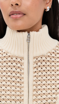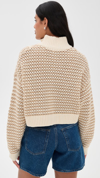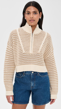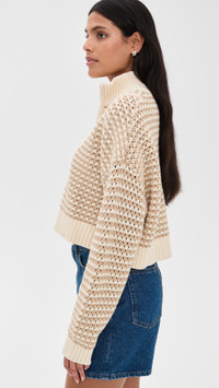 - Fabric: Mid-weight open knit - Ribbed trim - Mock neck - Quarter zip - Shell: 60% cotton/40% acrylic - Hand wash - Imported, China - Long sleeves with dropped shoulders Style #STAUD32650 Size & Fit Customers say: Runs small; please size up. Model measurements: Size S: Samruddhi (5'8") usually wears size XS-S Measurements from size S Length: 15.75in / 40.0cm, from shoulder