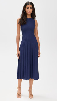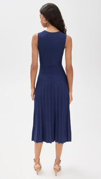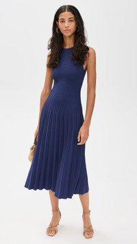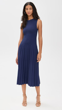 - Fabric: Mid-weight stretch knit - Pleated skirt - Crew neck - Pullover design, no closure - Shell: 59% viscose/40% nylon/1% elastane - Hand wash - Imported, China - Sleeveless Style #STAUD32471 Size & Fit Model measurements: Size XS: Rocio (5'11") usually wears size XS Measurements from size XS Length: 44in / 112.0cm, from shoulder