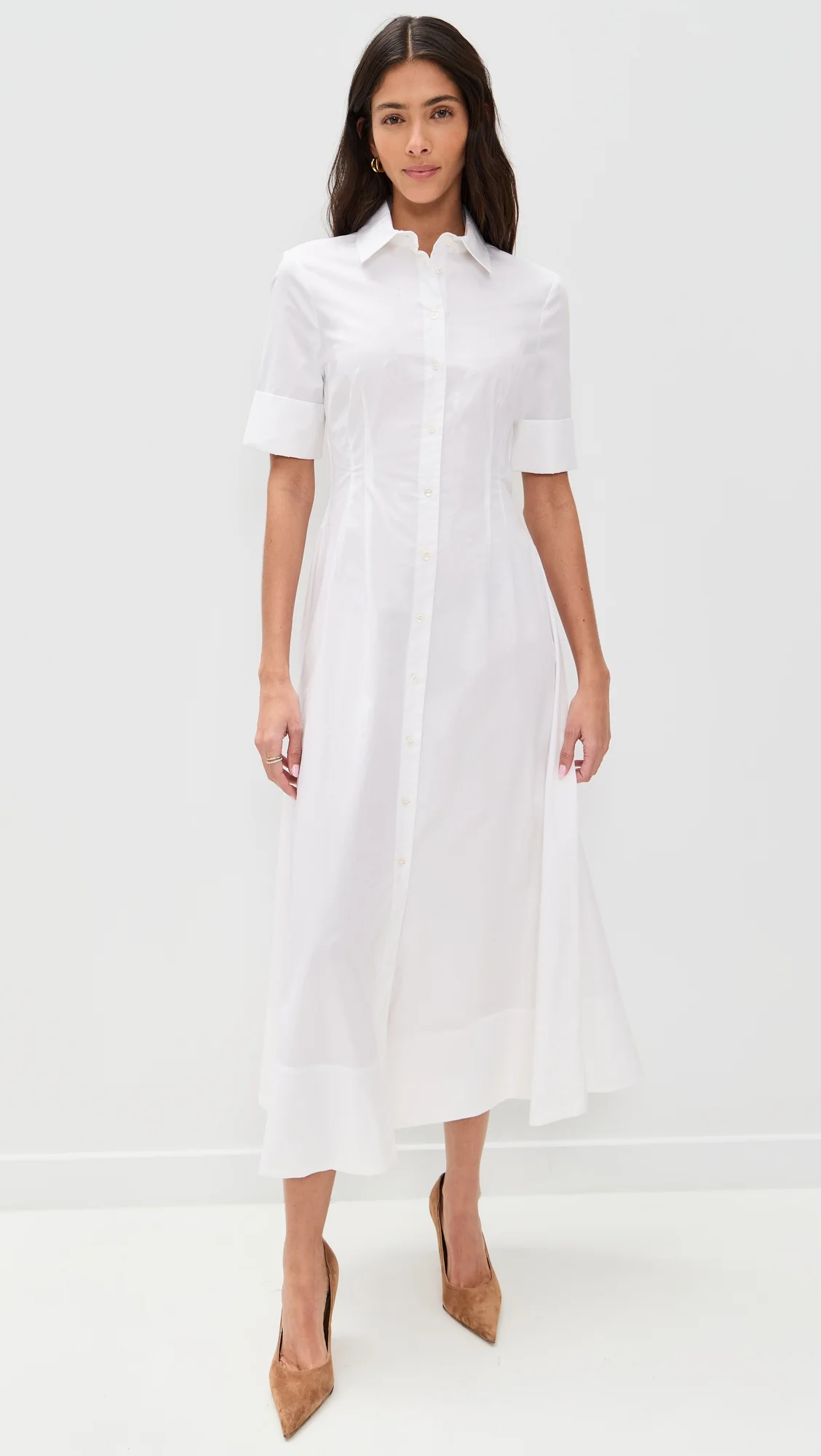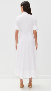 - Fabric: Mid-weight stretch poplin - Pleated waist - Maxi length - Collared neck - Short sleeves - Button placket - Shell: 98% cotton/2% elastane - Unlined - Wash cold - Imported, Vietnam Style #STAUD32954