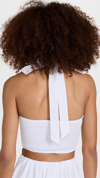 - Fabric: Mid-weight stretch poplin - Crisscross halter neckline with tie at back - Smocked elastic at back - Cropped profile - Shell: 98% cotton/2% spandex - Lined - Lining: 100% cotton - Wash cold - Imported, China Style #STAUD31532 Size & Fit Measurements from size 2 Length: 16.5in / 42.0cm, from shoulder