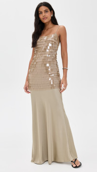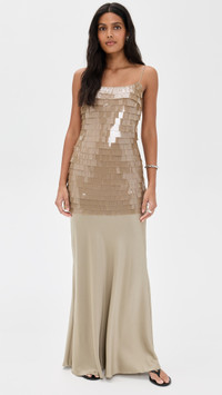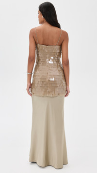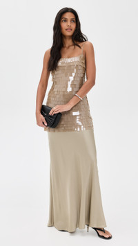 - Fabric: Lightweight, low-stretch satin - Mesh overlay with sequin embellishments - Maxi length - Square neckline - Sleeveless - Hook-and-eye and hidden zip at back - Shell: 93% silk/7% elastane - Trim: 100% polyester - Partially lined - Lining: 86% polyamide/14% elastane - Dry clean - Imported, China Style #STAUD32802