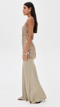 - Fabric: Lightweight, low-stretch satin - Mesh overlay with sequin embellishments - Maxi length - Square neckline - Sleeveless - Hook-and-eye and hidden zip at back - Shell: 93% silk/7% elastane - Trim: 100% polyester - Partially lined - Lining: 86% polyamide/14% elastane - Dry clean - Imported, China Style #STAUD32802 Size & Fit Model measurements: Size 2: Samruddhi (5'8") usually wears size 0-2 Measurements from size 2 Length: 59in / 150.0cm, from shoulder