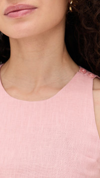 - Fabric: Lightweight, non-stretch linen weave - Buttons at shoulders - Contrast hem with floral cutouts - Button closures at shoulder - Crew neck - On-seam side pockets - Shell: 100% linen - Lined - Lining: 100% cotton - Dry clean - Imported, China Style #STAUD32513 Size & Fit Model measurements: Size XS: Brianna (5'9") usually wears size XS Measurements from size XS Length: 32.75in / 83.0cm, from shoulder