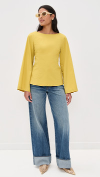 - Fabric: Lightweight stretch poplin - Boat neck - Long sleeves with flared cuffs - Ties at open back - Shell: 100% cotton - Part - Wash cold - Imported, China Style #STAUD32662