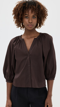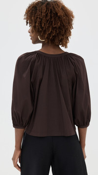 - Fabric: Crisp, lightweight stretch shirting - Gathered seams - V neck - Button placket - Shell: 98% cotton/2% spandex - Machine wash - Imported, China - Puff sleeves with button cuffs Style #STAUD32251 Size & Fit Model measurements: Size S: Stephany (5'9") usually wears size XS-S Measurements from size S Length: 22.5in / 57.0cm, from shoulder