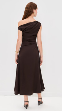 - Fabric: Lightweight, low-stretch satin - Ruching at shoulder and waist - Midi length - One-shoulder neckline - Sleeveless - Hook-and-eye and hidden zip at side - Shell: 93% silk/7% elastane - Unlined - Dry clean - Imported, China Style #STAUD32657