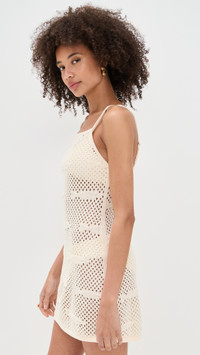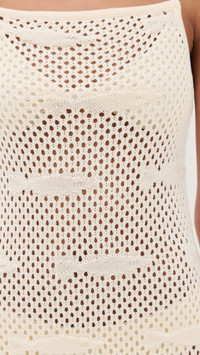 - Fabric: Lightweight open knit with stretch - Mini length - Square neckline - Pullover design, no closure - Shell: 100% cotton - Unlined - Hand wash - Imported, China - Adjustable shoulder straps Style #STAUD32625