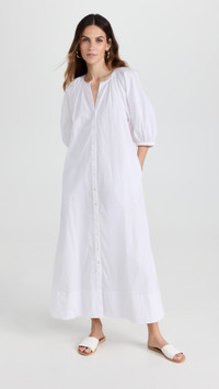 - Fabric: Lightweight, stretch shirting - Round gathered neck - Button placket - On-seam hip pockets - Shell: 98% cotton/2% spandex - Unlined - Wash cold - Imported, China - Elbow-length puff sleeves with button cuffs Style #STAUD30488 Size & Fit Cotton fabric has a smooth feel and offers ample stretch. Skin-tone undergarments are recommended. Shopbop’s expert stylist says: Runs large; designed with an oversized silhouette. For a slimmer fit, size down Model measurements: - Size S: Zorana (5'8.5") usually wears size XS - Size L: Natasha (5'9") usually wears size M-L Measurements from size S Length: 51.5in / 131.0cm, from shoulder