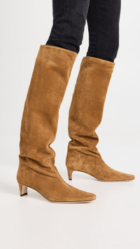 - Upper: Cowhide - Suede upper - Lining: Leather - Block heel - No closure, pull-on design - Square toe - Leather sole - Made in Portugal - This item cannot be gift-boxed Style #STAUD31547 Size & Fit Heel: 2in / 50mm Shaft: 19.25in / 49cm Circumference: 15in / 38cm