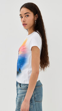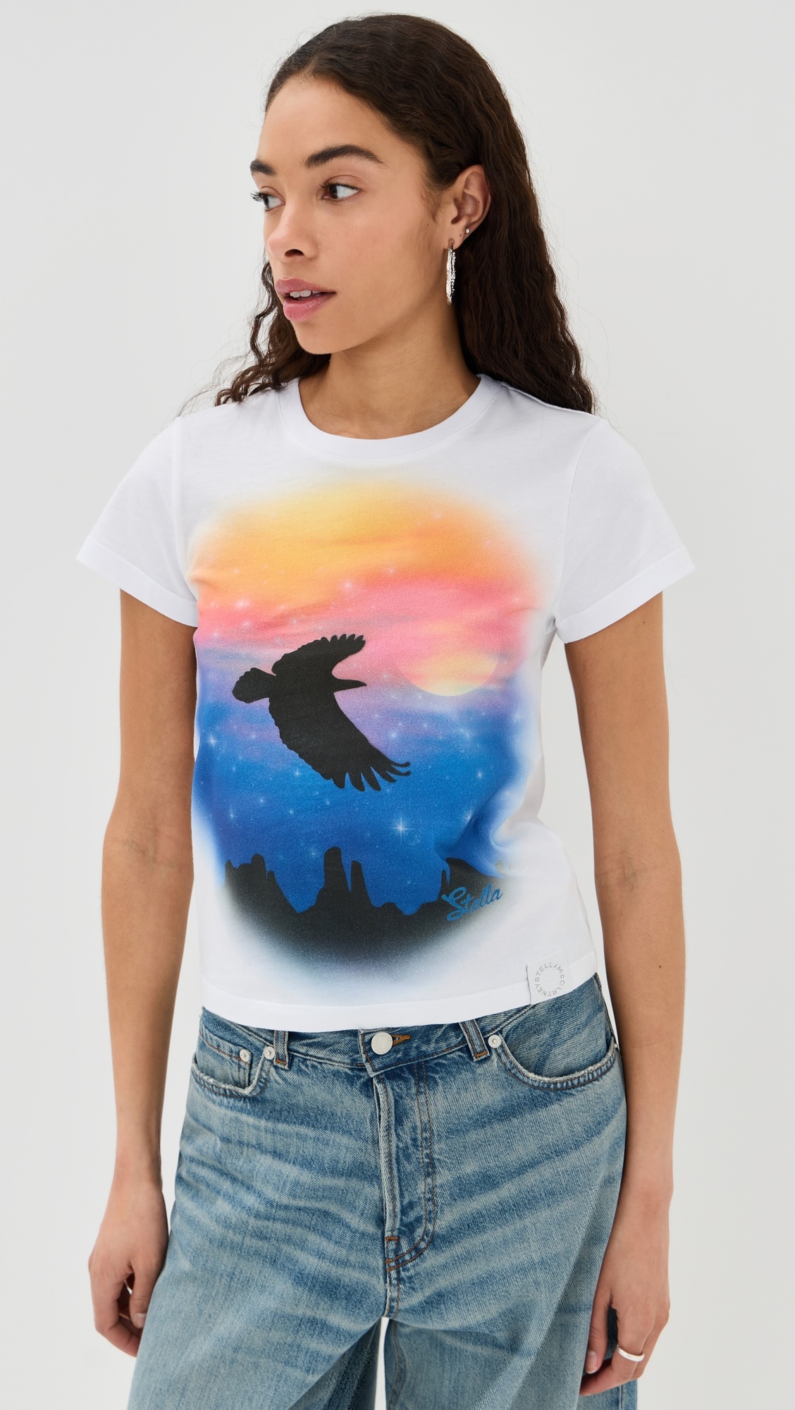 - Fabric: Lightweight jersey - Stella McCartney is part of The Climate Pledge, a commitment to reaching net-zero carbon emissions by 2040 - Sunset graphic - Crew neck - Shell: 100% cotton - Wash cold - Made in Italy - Short sleeves Style #STELA22230 Size & Fit Model measurements: Size S: Anisa (5'8.5") usually wears size XS Measurements from size S Length: 21.25in / 54.0cm, from shoulder