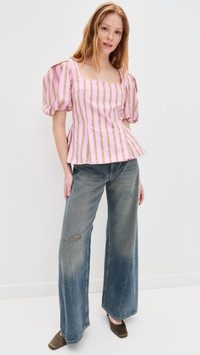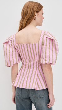 Soft Jacquard Weave Blouson Sleeve Top