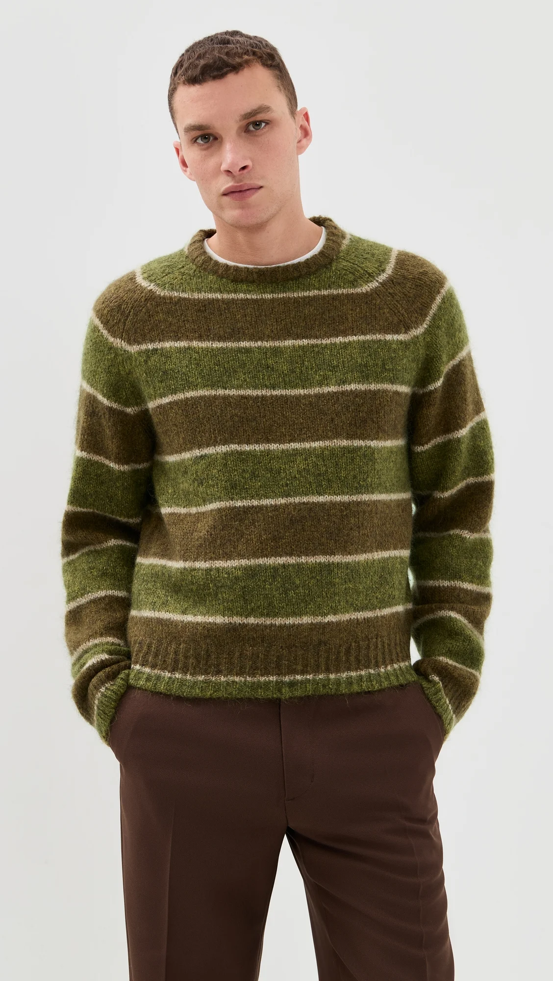- Fabric: Mid-weight stretch knit - Stripe pattern - Ribbed trim - Brushed finish - Crew neck - Long raglan sleeves - Shell: 50% nylon/25% modal/25% wool - Hand wash - Imported, China Style #SSURF30004 Size & Fit Model measurements: - Size M: Louis (6'0") usually wears size M - Size M: Gordon (6'1") usually wears size M Measurements from size M Length: 23.25in / 59cm Sleeve: 33.5in / 85cm Chest: 45in / 114cm