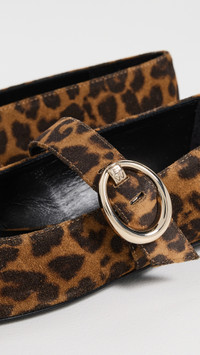 - Upper: Suede - Adjustable vamp strap with gold-tone buckle - Leopard print - Cushioned footbed - Lining: Leather - Slip on - Round toe - Leather sole - Made in Spain - This item cannot be gift-boxed Style #STUAR21547 Size & Fit Customers say: Runs large; please size down.