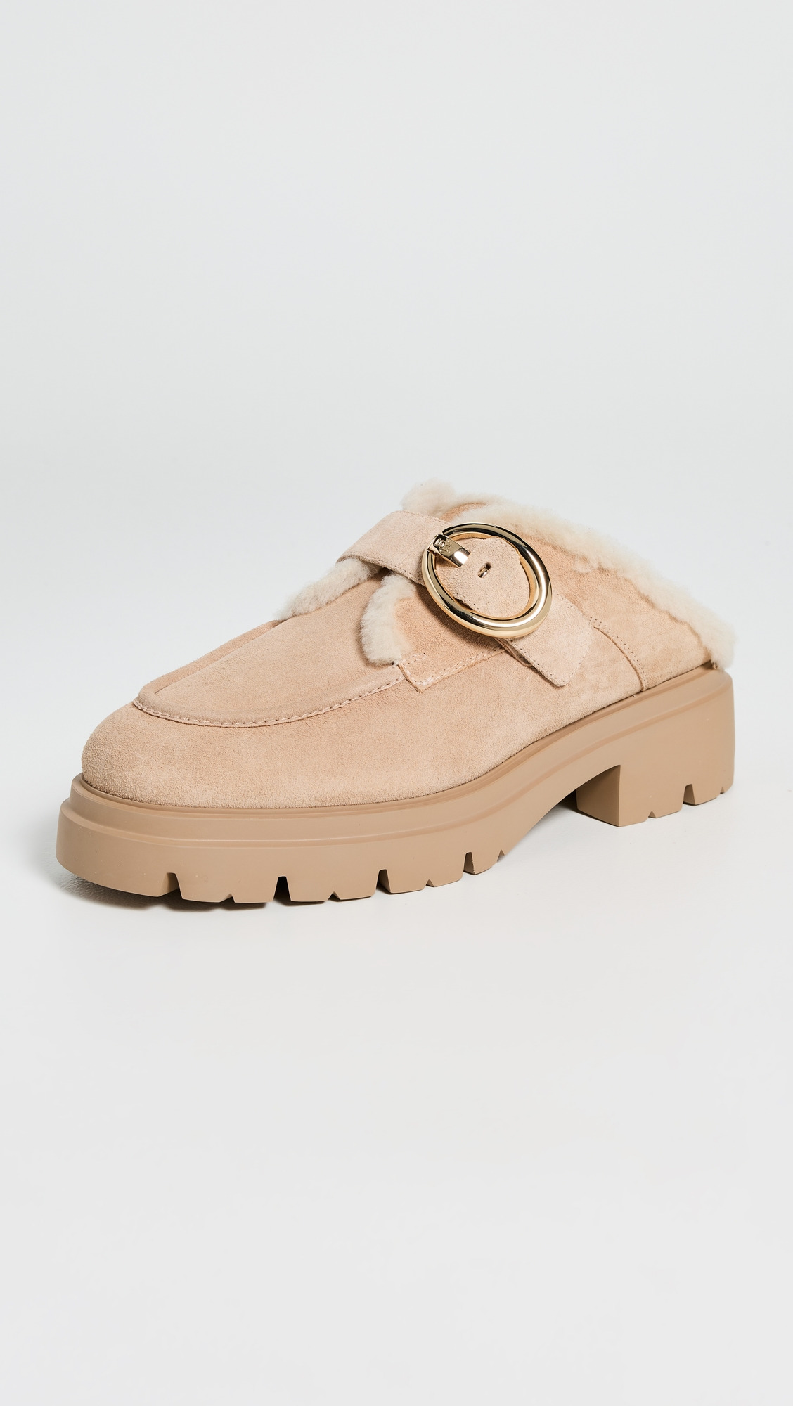 - Dyed sheep shearling, from Spain - Upper: Suede - Adjustable gold-tone buckle - Lining: Shearling - Slip on - Round toe - EVA sole - Made in Spain - This item cannot be gift-boxed Style #STUAR21570 Size & Fit Heel: 1.5in / 40mm
