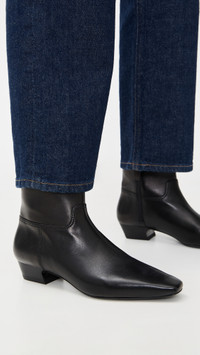 - Upper: Leather - Lining: Leather - Stacked heel - Zip closure - Pointed toe - Leather sole with rubber heel cap - Made in Spain - This item cannot be gift-boxed Style #STUAR21586 Size & Fit Heel: 1.25in / 30mm Shaft: 6.75in / 17cm Circumference: 11.5in / 29cm