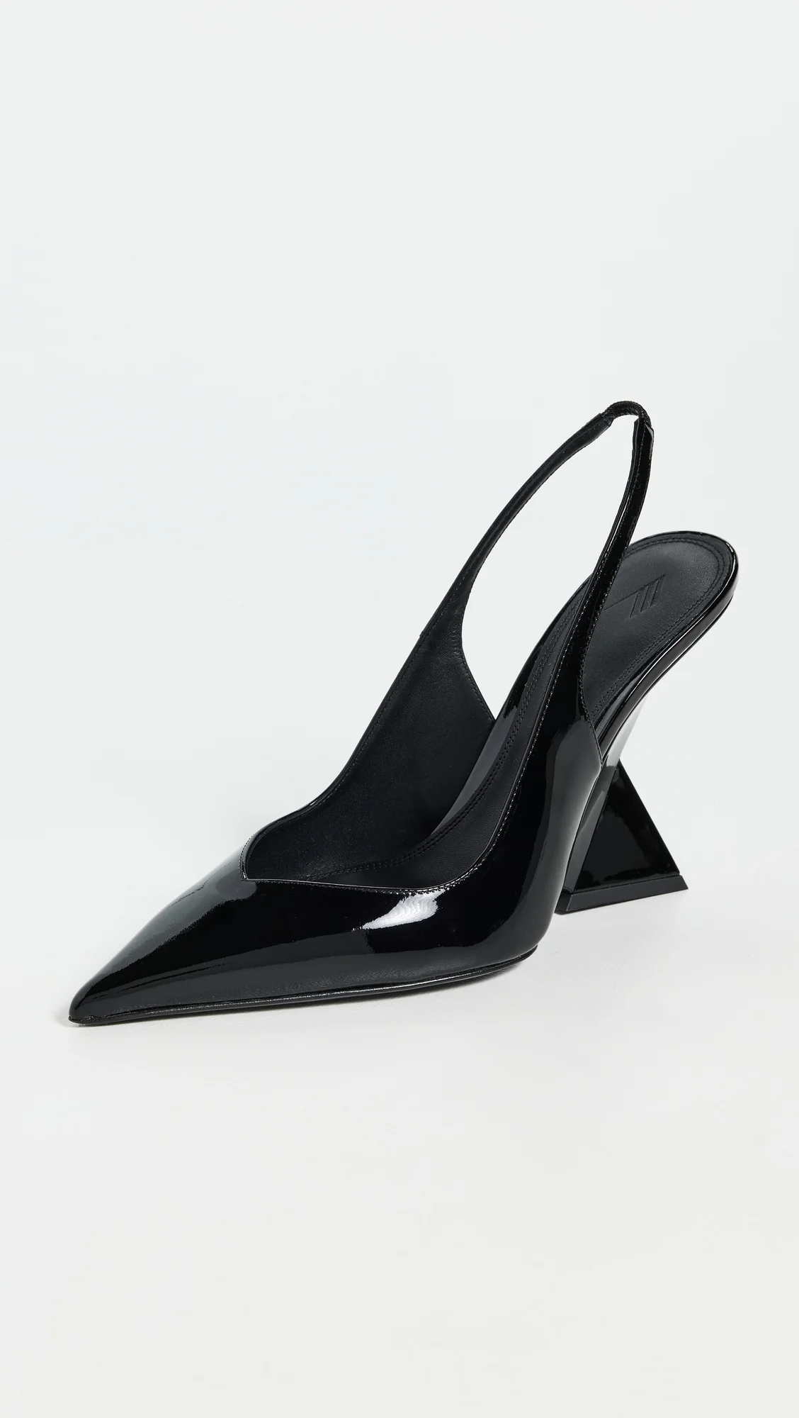 - Upper: Leather - Patent finish - Slingback strap with elastic inset - Lining: Leather - Wedge heel - Slip on - Pointed toe - Leather sole with rubber heel cap - Made in Italy - This item cannot be gift-boxed Style #ATICO30116