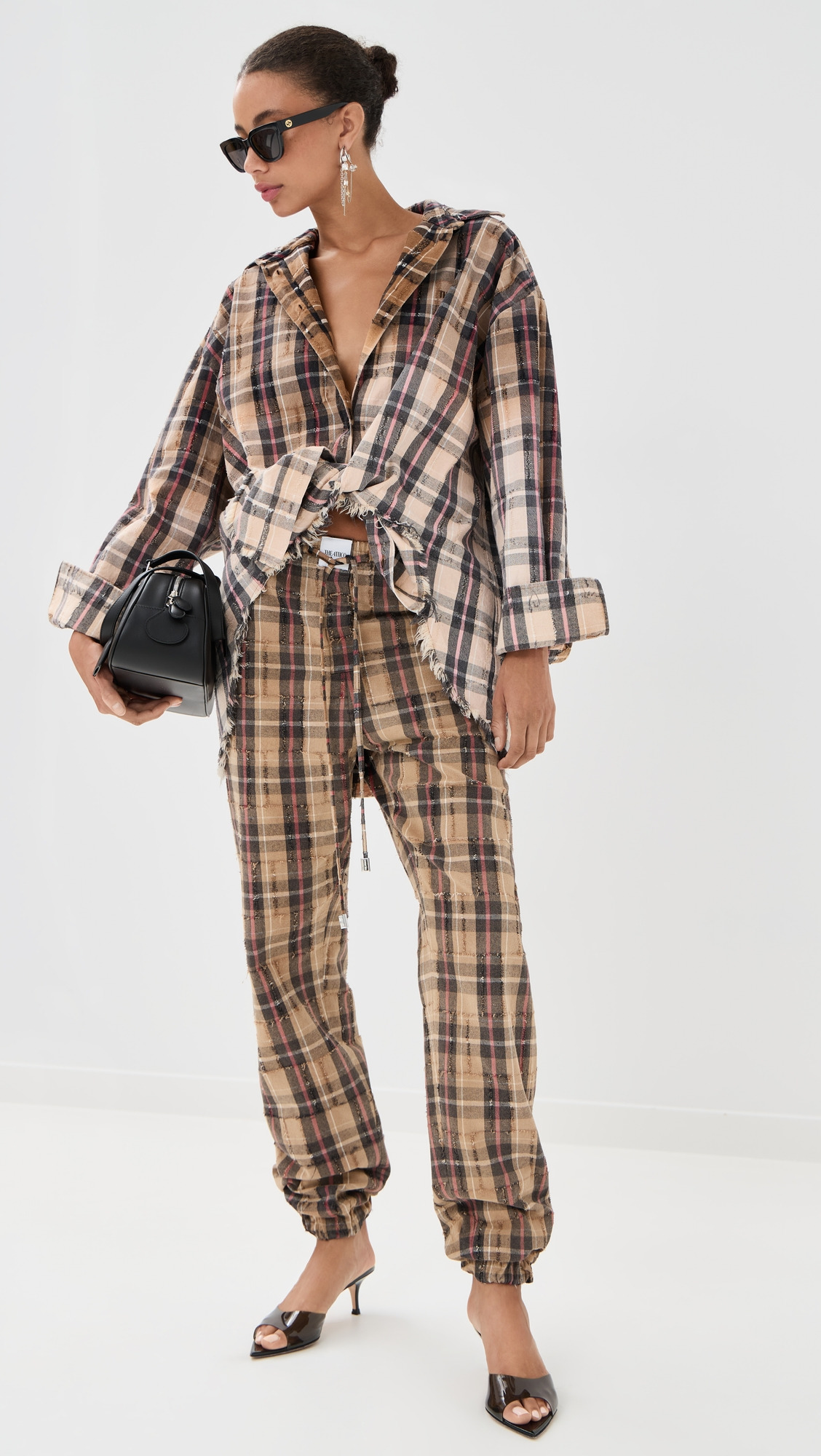 - Fabric: Mid-weight, non-stretch flannel - Plaid pattern - Elastic cuffs - Covered elastic waist with drawstring - Slant hip pockets and faux welt back pockets - Shell: 100% cotton - Wash cold - Made in Italy Style #ATICO30092