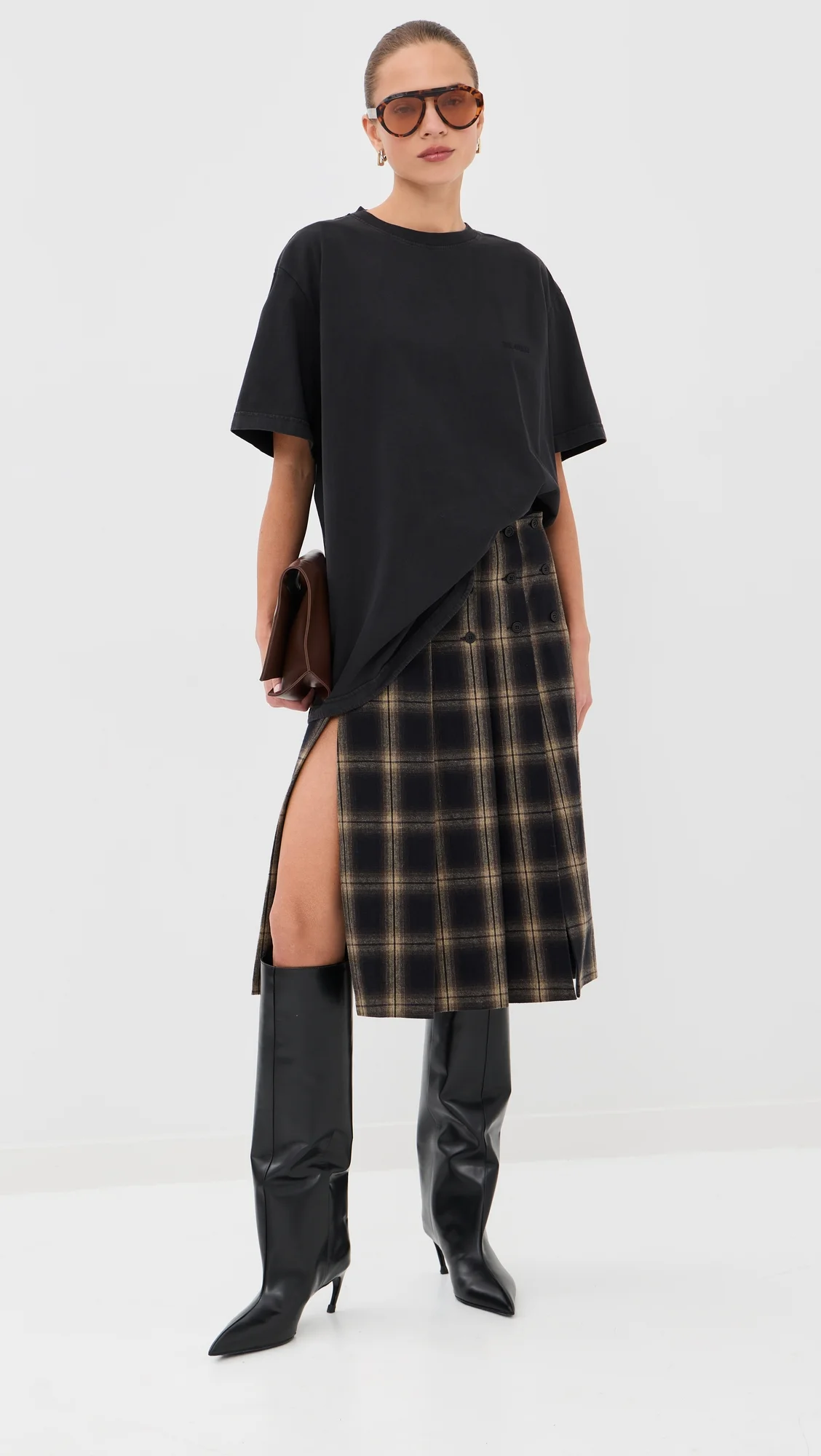 - Fabric: Mid-weight, non-stretch brushed weave - Pleated front with adjustable buttons - Plaid pattern - Split hem at side - Buttons at front - Shell: 100% cotton - Unlined - Wash cold - Made in Italy Style #ATICO30128 Size & Fit Model measurements: Size 36: Margaret (5'11") usually wears size 36 Measurements from size 36 Length: 26in / 66.0cm