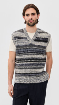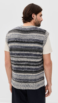 - Fabric: Heavyweight boucle stretch knit - Stripe pattern - V neck - Sleeveless - Pullover design, no closure - Shell: 85% cashmere/8% alpaca/3% nylon/2% cotton/2% polyamide - Dry clean - Made in the USA of imported materials Style #ELDST30004 Size & Fit Model measurements: Size M: Gordon (6'1") usually wears size M Measurements from size M Length: 25.25in / 64cm Chest: 44in / 112cm