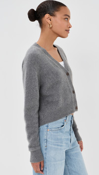- Fabric: Mid-weight brushed knit with stretch - Ribbed edges - V neck - Long sleeves - Button placket - Shell: 100% cashmere - Dry clean - Made in the USA Style #ELDER30002