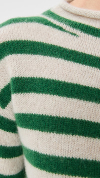 - Fabric: Heavyweight stretch knit - Stripe pattern - Rolled edges - Mock neck - Long sleeves - Button placket - Shell: 100% cashmere - Dry clean - Made in the USA of imported materials Style #ELDER30065 Size & Fit Model measurements: Size XS: Margaret (5'11") usually wears size XS Measurements from size S Length: 24.5in / 62.0cm, from shoulder