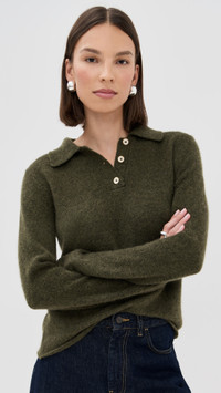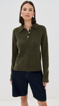 - Fabric: Lightweight knit - Polo neckline - Long sleeves - Shell: 100% cashmere - Wash cold - Made in the USA Style #ELDER30024