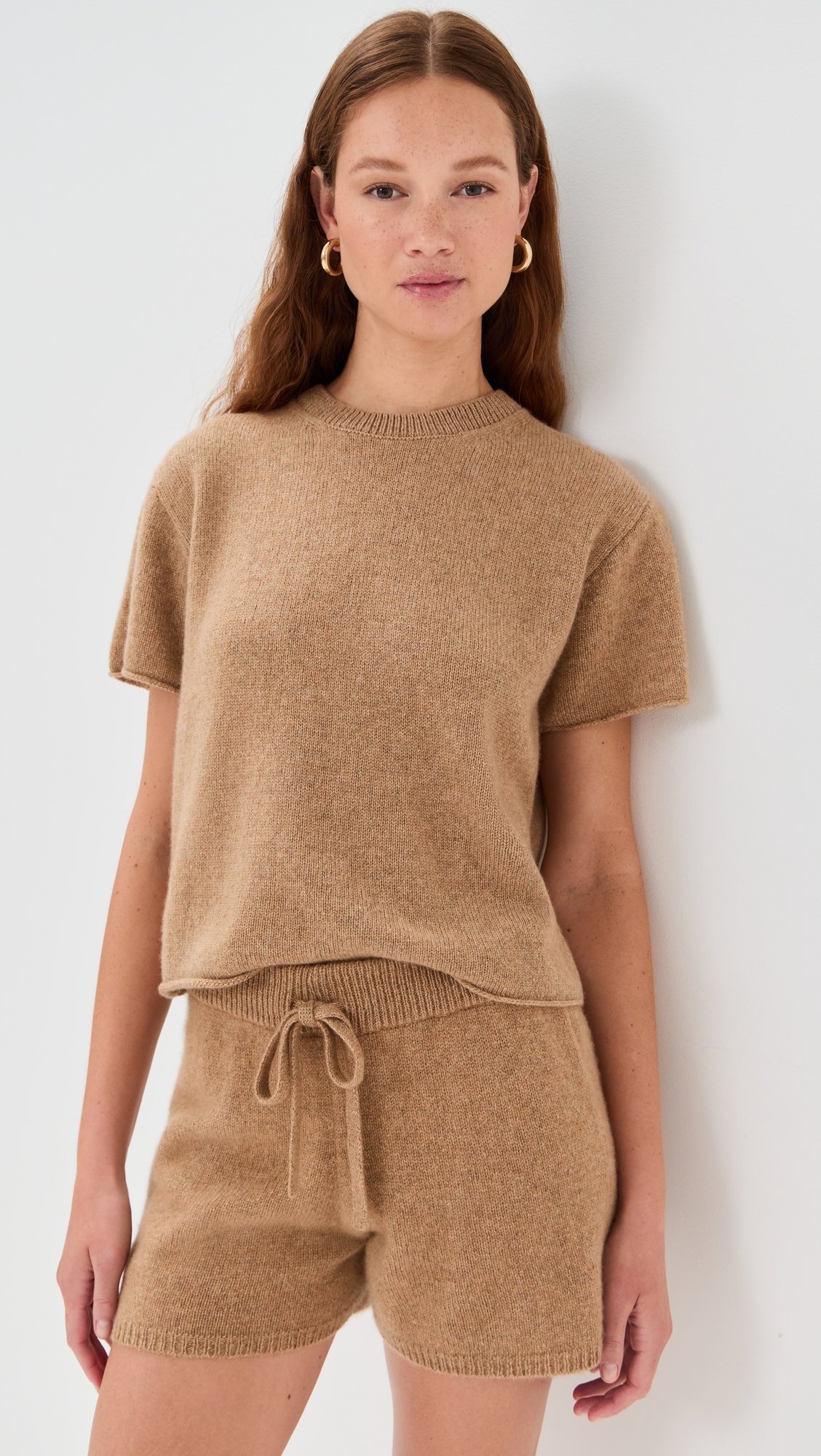 - Fabric: Lightweight knit - Rolled edges - Crew neck - Short sleeves - Shell: 100% cashmere - Dry clean - Made in the USA Style #ELDER30003