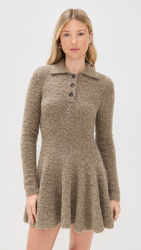 - Fabric: Mid-weight, super-stretch boucle knit - Circle skirt - Mini length - Polo neckline - Long sleeves - Partial button placket - Shell: 41% wool/26% acrylic/22% alpaca/10% polyamide/1% elastane - Unlined - Hand wash - Imported, China Style #GARME30036 Size & Fit Customers say: Runs large; please size down. Model measurements: Size 4: Giselle (5'10") usually wears size 4 Measurements from size 4 Length: 30.25in / 77.0cm, from shoulder to front hem