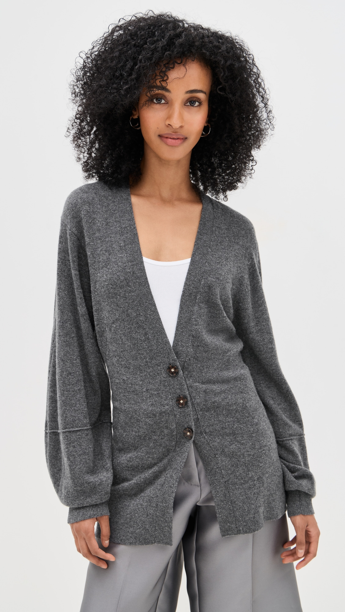 balloon-sleeve buttoned cardigan