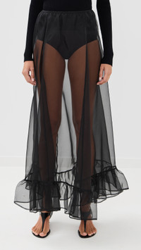 - Fabric: Lightweight, non-stretch chiffon - Ruffled hem - Covered elastic waistband - Sheer - Shell: 100% silk - Unlined - Hand wash - Imported, China Style #GARME30040 Size & Fit Model measurements: Size 4: Brittany (5'9.5") usually wears size 4 Measurements from size 6 Length: 39.25in / 100.0cm