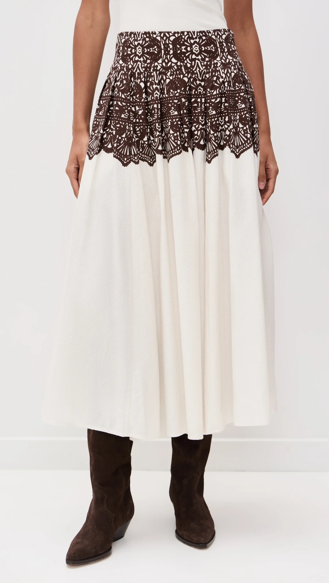 - Fabric: Mid-weight, non-stretch pique knit - Pleated design - Lace print at top - Hook-and-eye and hidden zip at side - On-seam side pockets - Shell: 100% cotton - Unlined - Dry clean - Imported, India Style #TGREA31526 Size & Fit Customers say: Runs large; please size down. Model measurements: Size 0: Rocio (5'11") usually wears size 0 Measurements from size 0 Length: 35in / 89.0cm