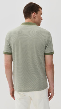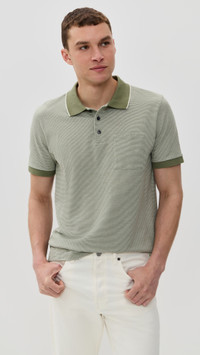 - Fabric: Lightweight knit - Stripe pattern - Ribbed edges - Polo neckline - Short sleeves - Partial button placket - Patch breast pocket - Shell: 100% cotton - Wash cold - Imported, Peru Style #THEOR44877