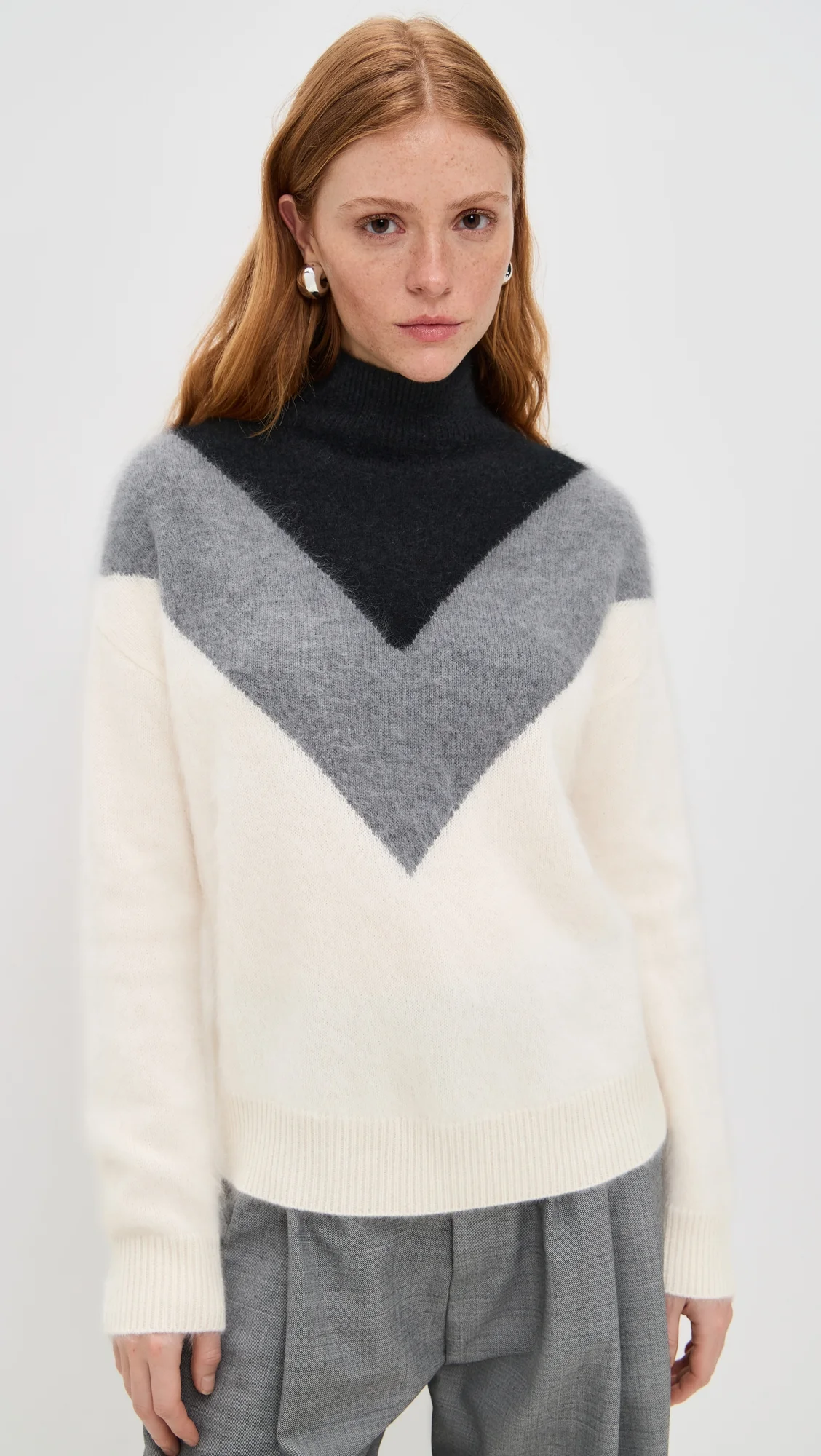 Chevron Turtleneck Sweater in Airy Cashmere