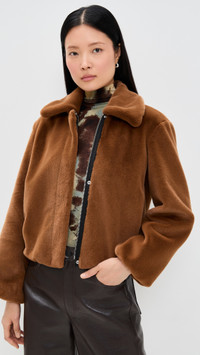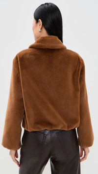 - Fabric: Mid-weight, non-stretch faux fur - Collared neck - Long sleeves with elastic cuffs - Snap flap and hidden zip placket - Covered elastic waistband - Welt front pockets - Shell: 100% polyester - Lined - Lining: 100% cupro - Dry clean - Imported, Vietnam Style #THEOR44986 Size & Fit Model measurements: Size M: Somin (5'10.5") usually wears size XS-S Measurements from size M Length: 20in / 51.0cm, from shoulder