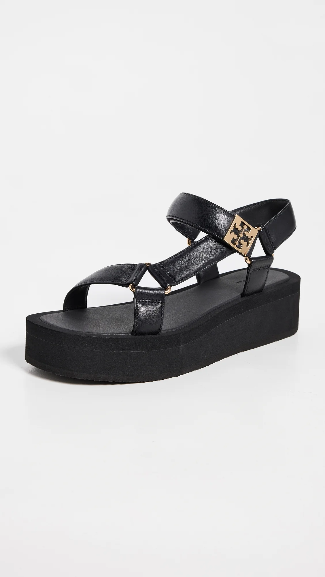 - Upper: Sheepskin - Gold-tone logo hardware - Padded footbed - Lining: Synthetic - Velcro closure - Open toe - Rubber sole - Imported, Vietnam - This item cannot be gift-boxed Style #TORYB50941 Size & Fit This shoe is available in whole sizes only. If you wear a half size, please size up. Heel: 2in / 50mm Platform: 1.5in / 35mm