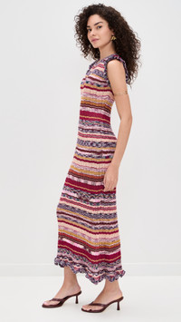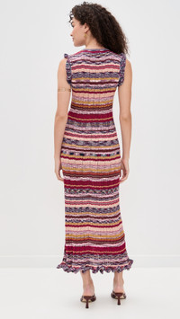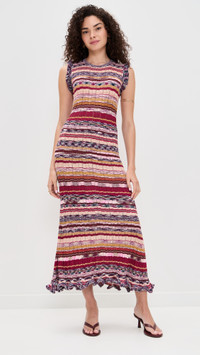 - Fabric: Lightweight, super-stretch ribbed knit - Ruffle trim - Stripe pattern - Midi length - Crew neck - Sleeveless - Pullover design, no closure - Shell: 50% rayon/40% cotton/10% lycra spandex - Unlined - Dry clean - Imported, China Style #ULLAJ23194