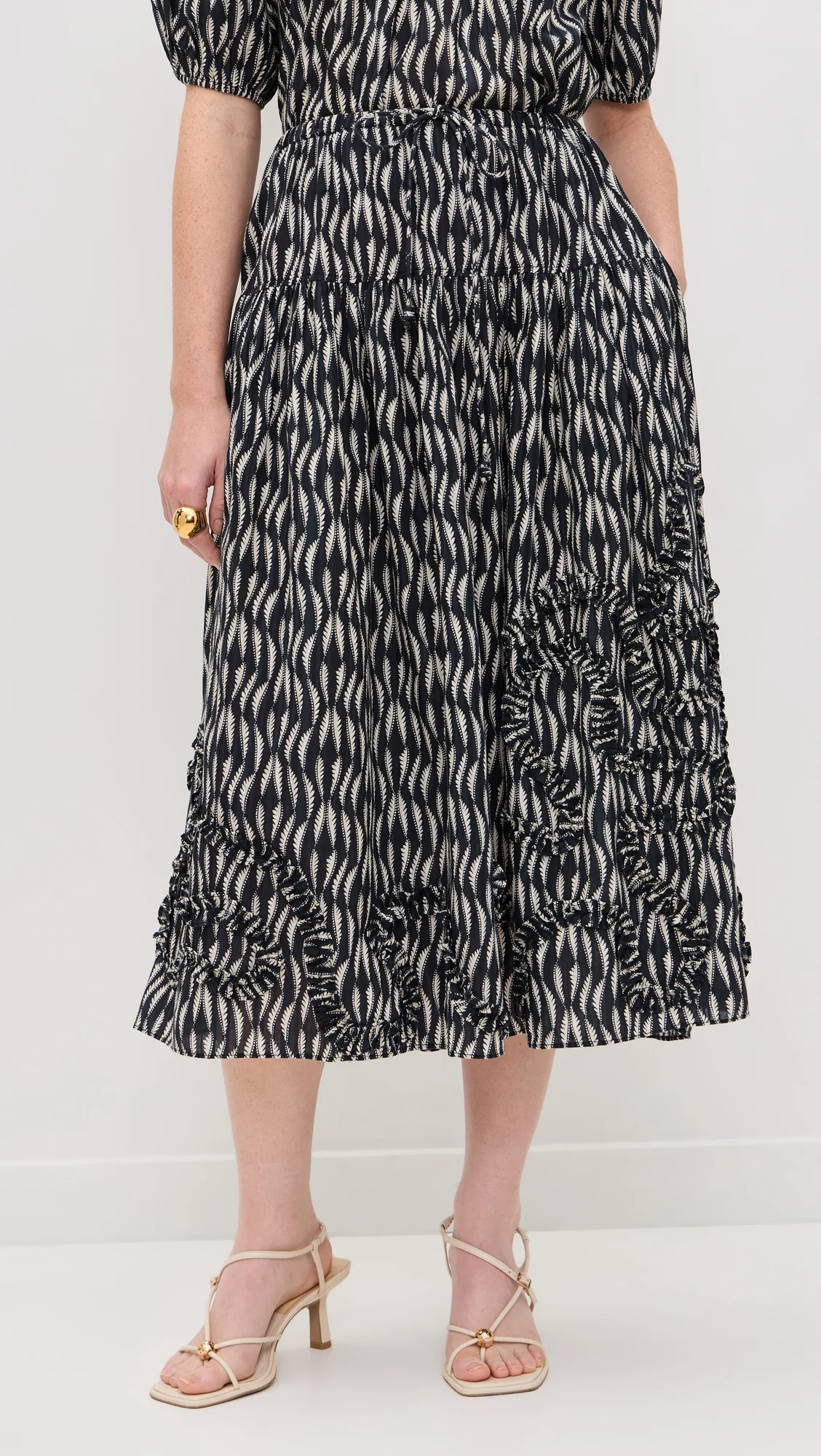 - Fabric: Lightweight, non-stretch weave - Tiered seams - Ruffled edges - Covered elastic waist with drawstring - On-seam side pockets - Shell: 66% cotton/34% viscose - Unlined - Hand wash - Imported, India Style #ULLAJ23365