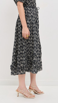 - Fabric: Lightweight, non-stretch weave - Tiered seams - Ruffled edges - Covered elastic waist with drawstring - On-seam side pockets - Shell: 66% cotton/34% viscose - Unlined - Hand wash - Imported, India Style #ULLAJ23365 Size & Fit Model measurements: Size 2: Haley (5'9.5") usually wears size 2 Measurements from size 2 Length: 32in / 81.0cm