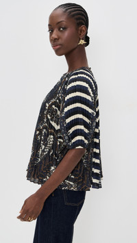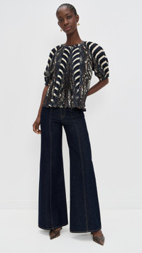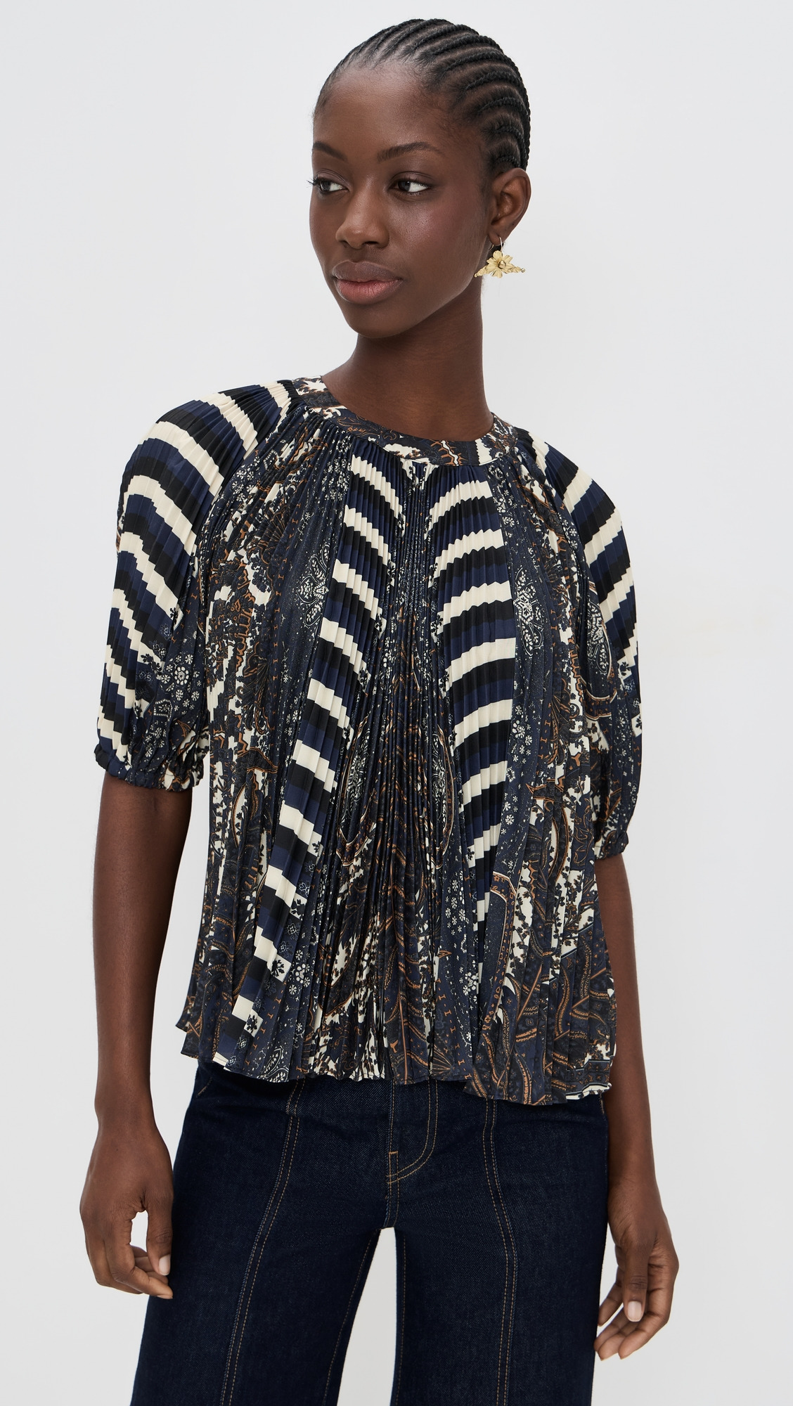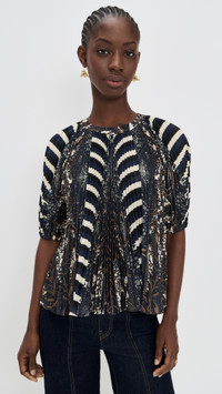 - Fabric: Mid-weight, non-stretch silky weave - Allover pleating - Crew neck - Short puff sleeves with elastic cuffs - Button keyhole at back - Shell: 100% polyester - Dry clean - Imported, China Style #ULLAJ23252 Size & Fit Model measurements: Size 2: Cher (5'11") usually wears size 0 Measurements from size 2 Length: 24in / 61.0cm, from shoulder