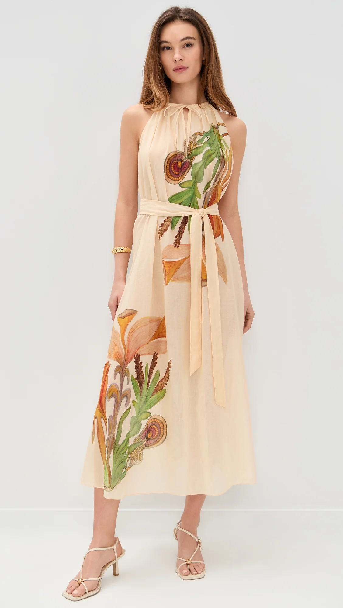 - Fabric: Lightweight, non-stretch voile - Floral print - Slits at sides - Maxi length - Crew neck - Sleeveless - Tie at neckline - Tie self-belt - Shell: 100% cotton - Unlined - Hand wash - Imported, India Style #ULLAJ23426
