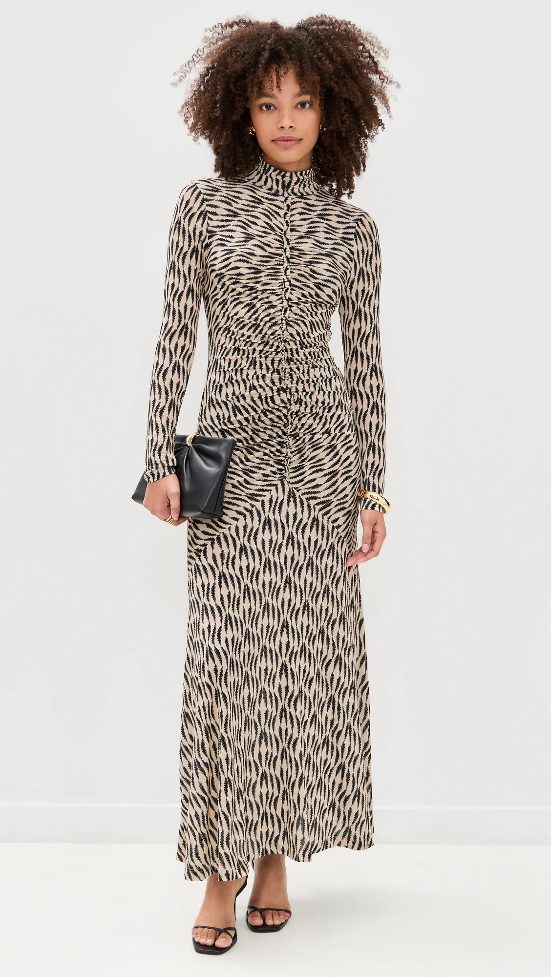 - Fabric: Lightweight, super-stretch jersey - Abstract pattern - Ruched detailing at bust - Maxi length - Turtleneck - Long sleeves - No closure, pull-on design - Shell: 91% rayon/9% elastane - Unlined - Wash warm - Imported, Turkey Style #ULLAJ23402 Size & Fit Model measurements: Size S: Alexis (5'8") usually wears size XS-S Measurements from size S Length: 50.5in / 128.0cm, from shoulder