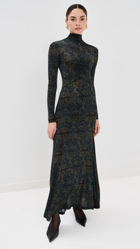 Koa ruched printed stretch-jersey turtleneck maxi dress Dark green