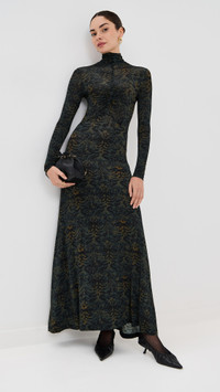 - Fabric: Lightweight, super-stretch tricot jersey - Ruched seam at front - Maxi length - Turtleneck - Long sleeves - Pullover design, no closure - Semi-sheer - Shell: 91% rayon/9% elastane - Unlined - Wash warm - Imported, Turkey Style #ULLAJ23257 Size & Fit Model measurements: Size P: Brianna (5'9") usually wears size P Measurements from size P Length: 52.75in / 134.0cm, from shoulder