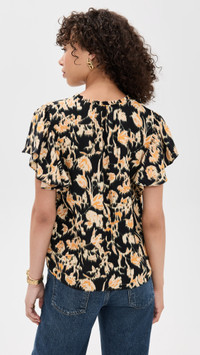 - Fabric: Lightweight, non-stretch weave - Floral pattern - V neck - Short flutter sleeves - Pullover design, no closure - Shell: 100% viscose - Dry clean - Imported, China Style #ULLAJ23268 Size & Fit Model measurements: Size 0: Alexa (5'9") usually wears size 0-2 Measurements from size 0 Length: 22in / 56.0cm, from shoulder